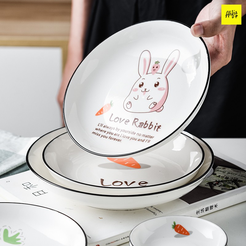 - Bộ bát đĩa có thiết kế hiện đại kết hợp họa tiết Love Rabbit xinh xắn sẽ làm sáng bừng bàn ăn gia đình bạn. Bát đĩa đẹp bạn cũng tự tin tiếp khách đó ạ.