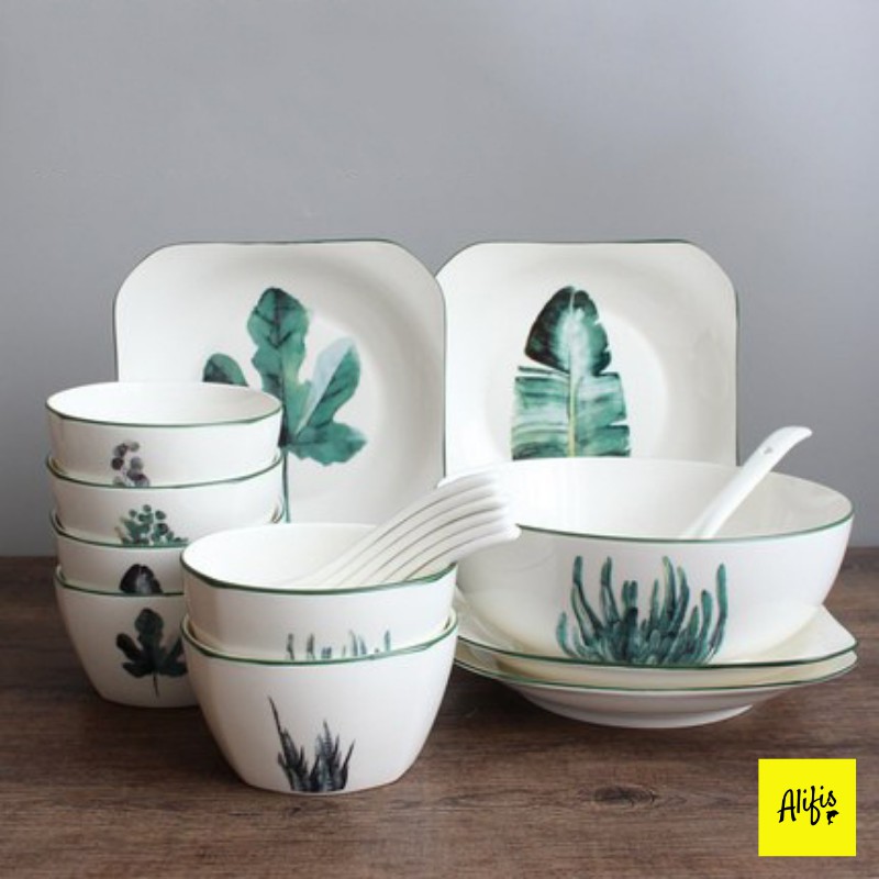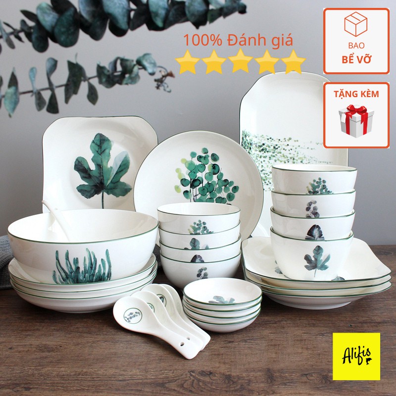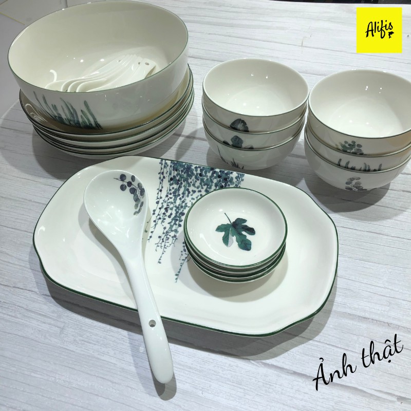 Nhà cửa & Đời sống > Bộ đồ bàn ăn > Dĩa || Bộ bát đĩa, bộ chén bát sứ họa tiết cây lá nhiệt đới cho 4-6 người - phụ kiện bàn ăn và quà tặng tân giaCòn hàng