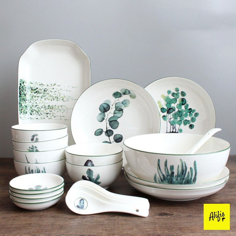 Giới thiệu Bộ bát đĩa, bộ chén bát sứ họa tiết cây lá nhiệt đới cho 4-6 người - phụ kiện bàn ăn và quà tặng tân gia
