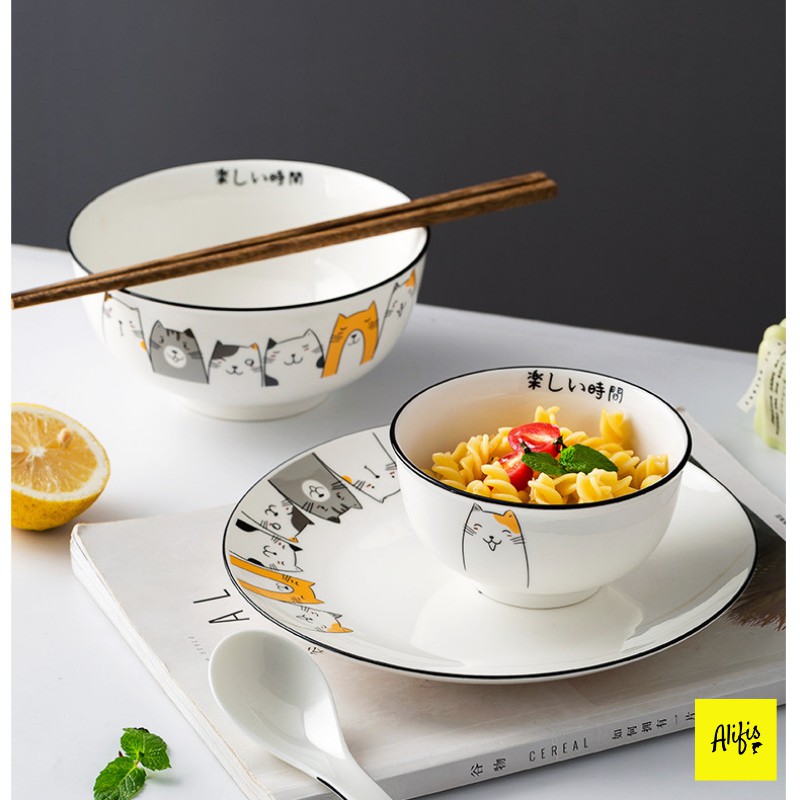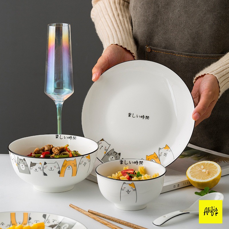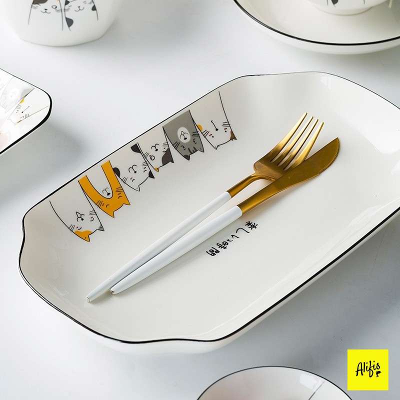 Nhà cửa & Đời sống > Bộ đồ bàn ăn > Dĩa || Bộ bát đĩa, bộ chén đĩa sứ họa tiết mèo xinh xắn 23 món cho 2 - 4 người – phụ kiện bàn ăn và quà tặng tân giaCòn hàng
