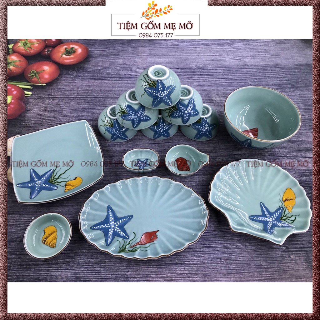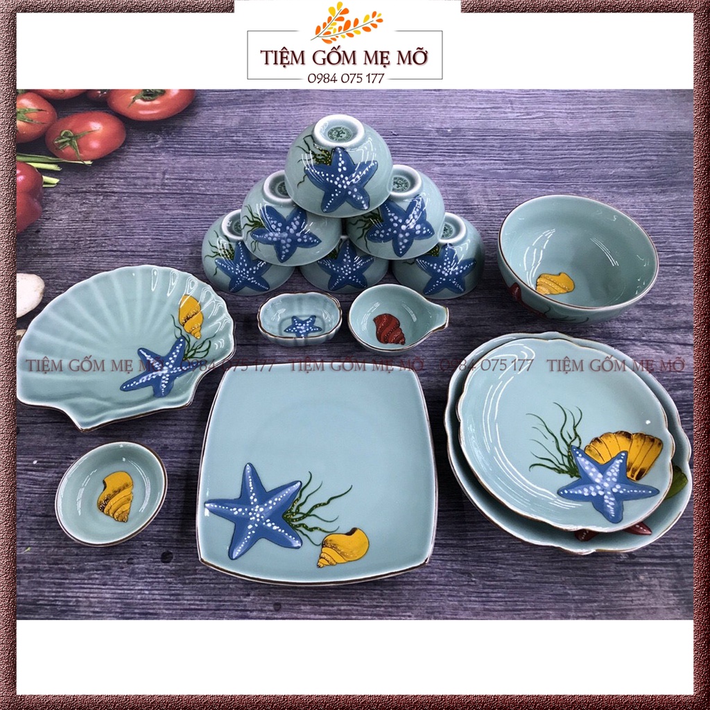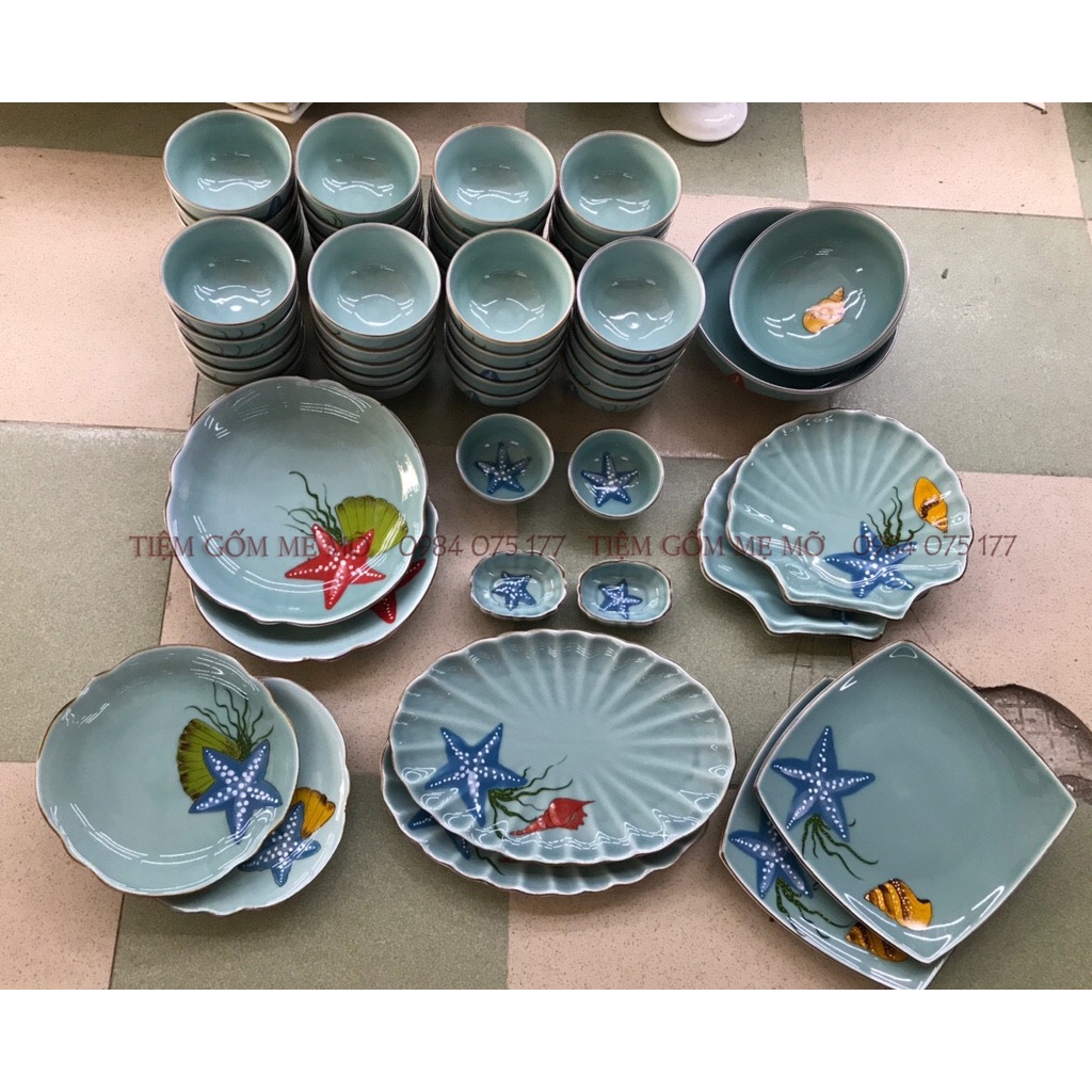 Bộ bát đĩa bộ tô chén dĩa đại dương xanh gốm sứ Bát Tràng