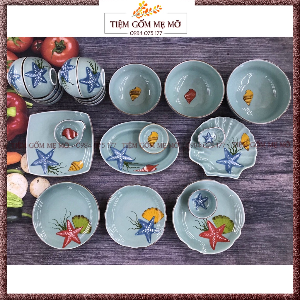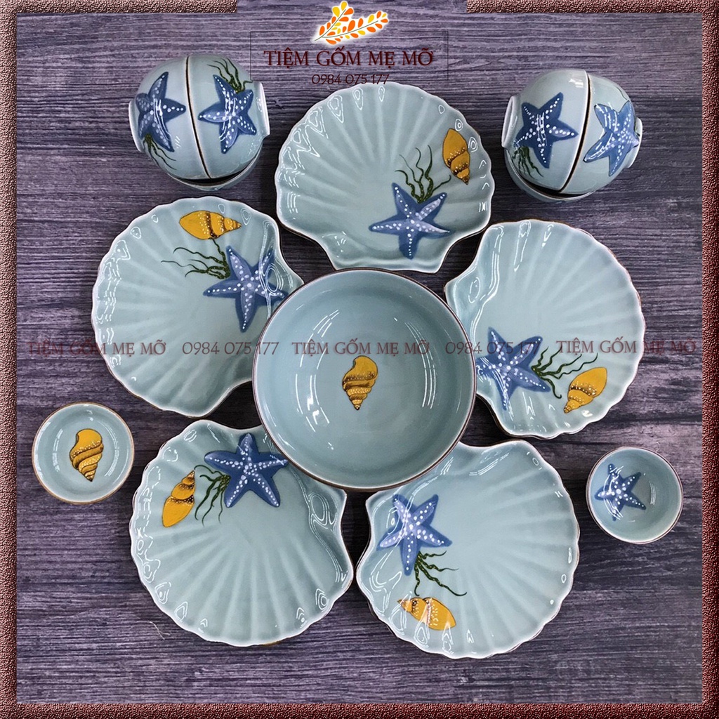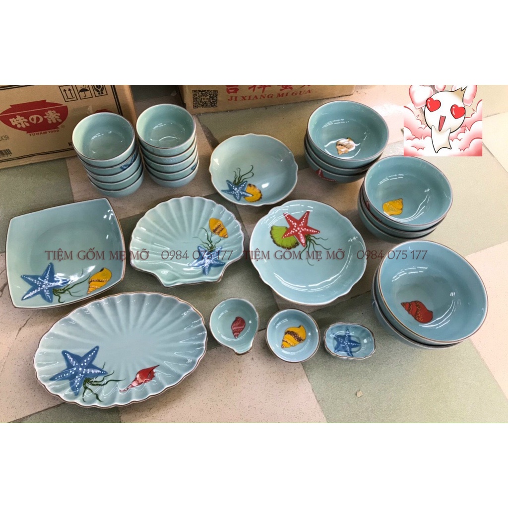 Bộ bát đĩa bộ tô chén dĩa đại dương xanh gốm sứ Bát Tràng