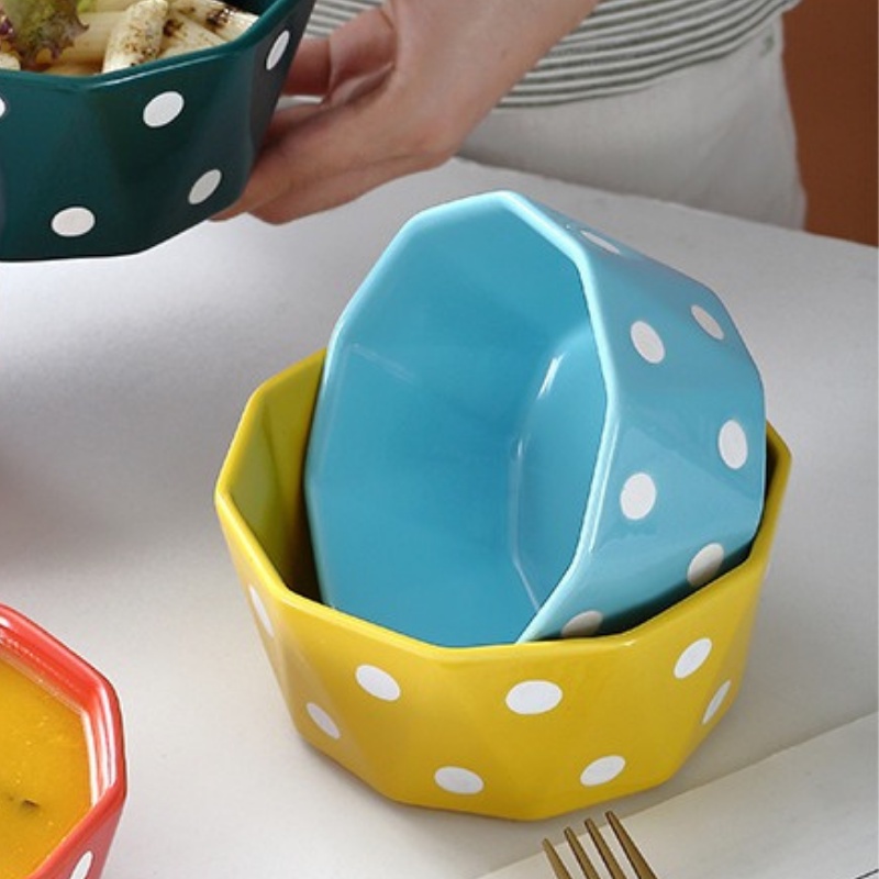 - Bát họa tiết chấm bi trắng nền xanh dương xinh xắn được làm từ gốm sứ tráng men bóng, chịu được nhiệt độ cao bền bỉ với thời gian