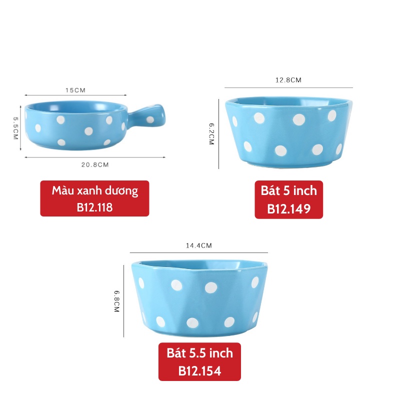 Bát đĩa - Các mẫu bát họa tiết chấm bi trắng nền xanh dương xinh xắn - trang trí căn bếp theo cách của bạn - dùng trong nhà bếp⭐ THÔNG TIN SẢN PHẨM: