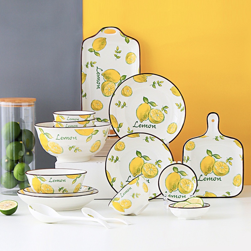 Bát đĩa - Các set bát đĩa họa tiết lemon xinh xắn sang trọng - dành cho gia đình 2-4-6 người