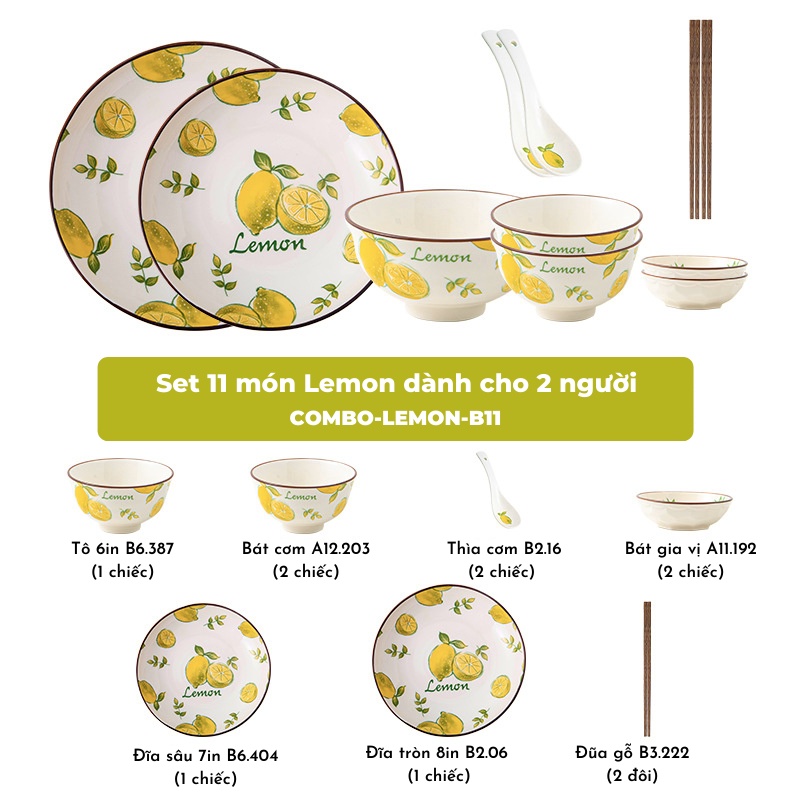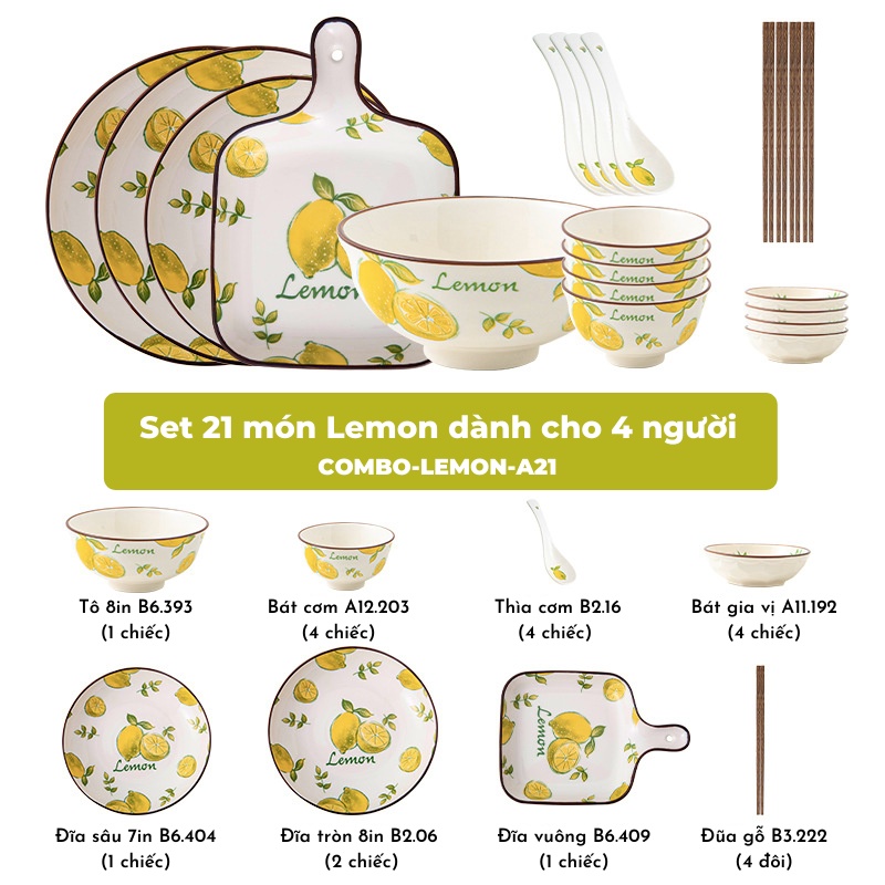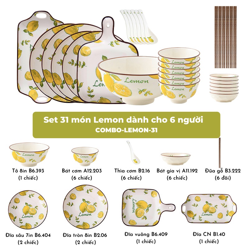 Bát đĩa - Các set bát đĩa họa tiết lemon xinh xắn sang trọng - dành cho gia đình 2-4-6 ngườiTHÔNG TIN SẢN PHẨM: