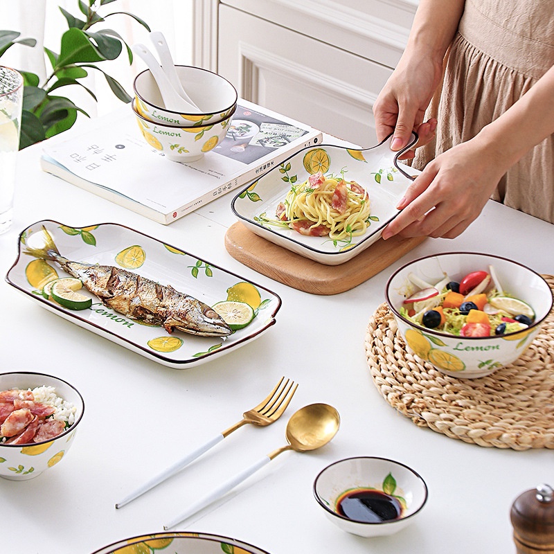 Nhà cửa & Đời sống > Bộ đồ bàn ăn > Tô || Bát đĩa - Các set bát đĩa họa tiết lemon xinh xắn sang trọng - dành cho gia đình 2-4-6 ngườiCòn hàng