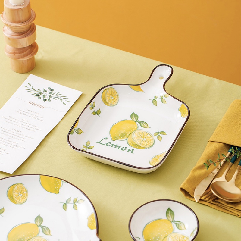 - Bát đĩa sứ, bộ sưu tập bát đĩa họa tiết chanh vàng sang trọng, bàn ăn của bạn thêm màu sắc.