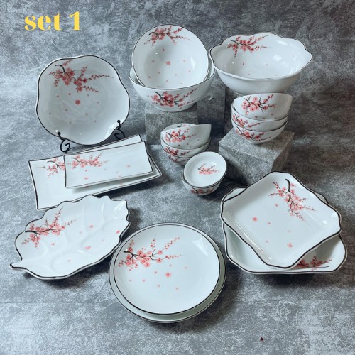 Nhà cửa & Đời sống > Bộ đồ bàn ăn > Dĩa || Bộ bát đĩa cao cấp bát tràng, set 15-32 sp, bộ Hoa Đào Ngày Tết - Gốm Nghệ NhânCòn hàng