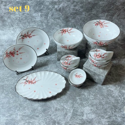 Bộ bát đĩa cao cấp bát tràng, set 15-32 sp, bộ Hoa Đào Ngày Tết - Gốm Nghệ Nhân