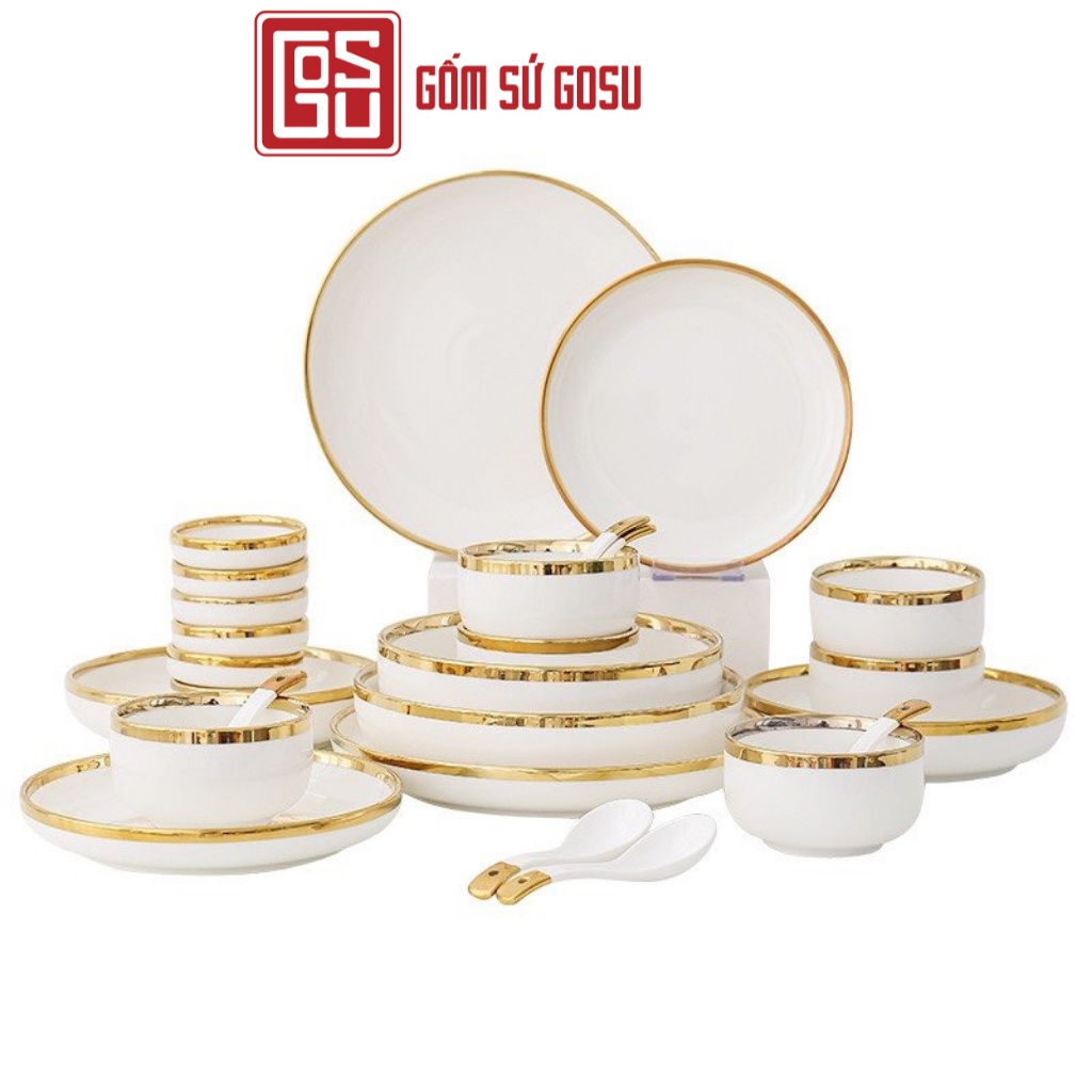 Nhà cửa & Đời sống > Bộ đồ bàn ăn > Tô || Bộ bát đĩa cao cấp,chén dĩa decor đẹp 26 món viền vàng các màu phong cách Bắc ÂuCòn hàng