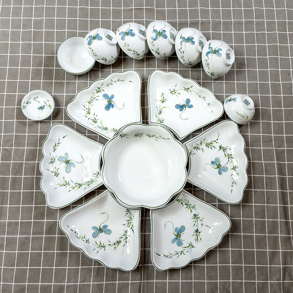- Bộ sản phẩm bát đĩa Bát Tràng bao gồm 15 chi tiết: