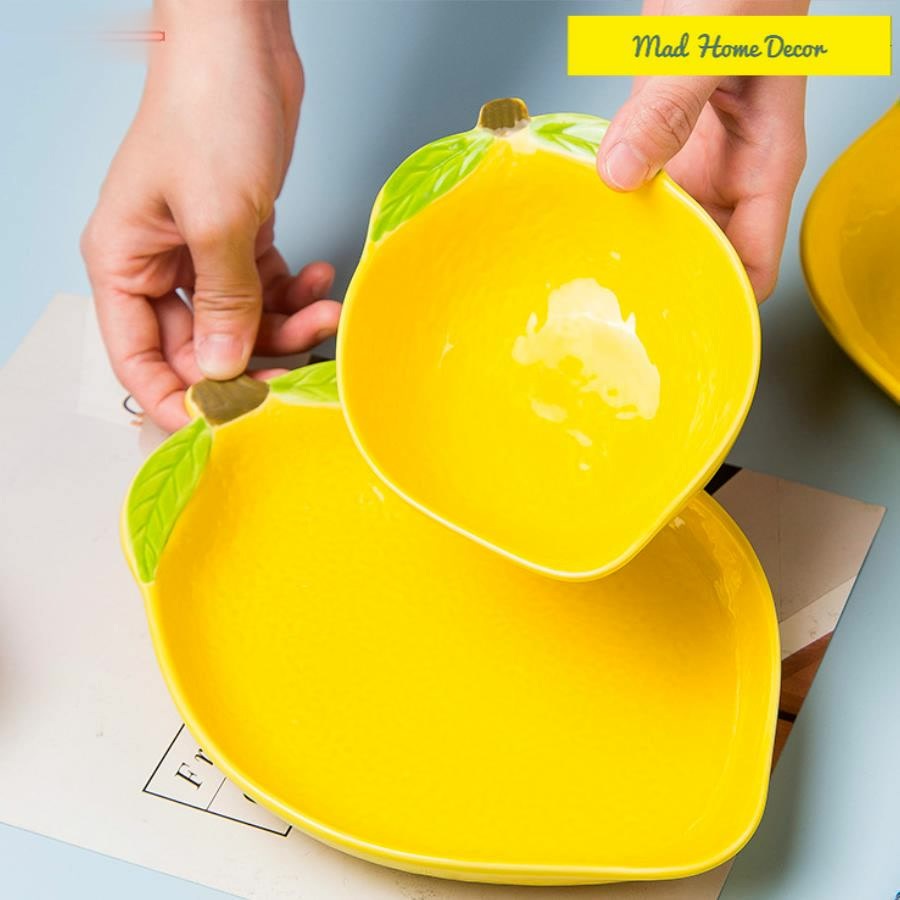 Nhà cửa & Đời sống > Bộ đồ bàn ăn > Dĩa || Bát, đĩa, chén ăn dặm gốm sứ hình quả chanh, quả dứa xinh xắn - An toàn tuyệt đối khi sử dụngCòn hàng