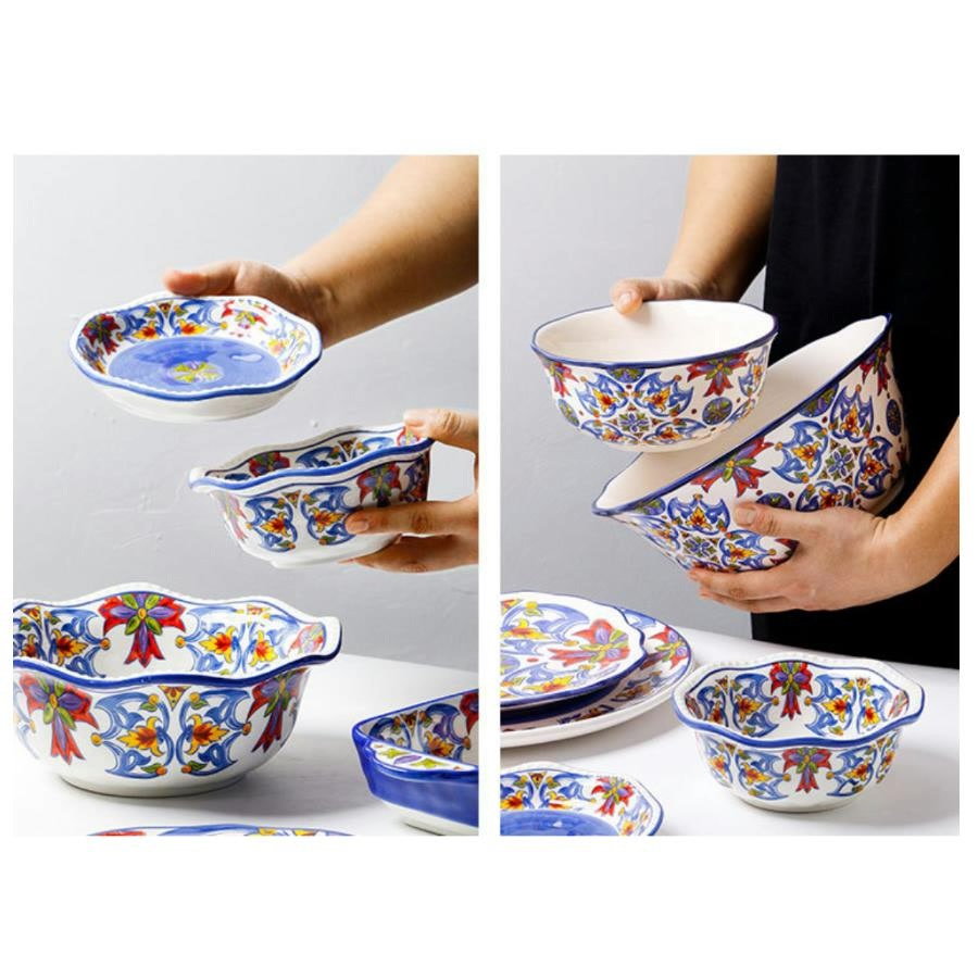 Bộ bát, đĩa, chén,dĩa gốm mỹ nghệ vẽ tay-Họa tiết hoa xanh - Chuyên xuất Châu Âu