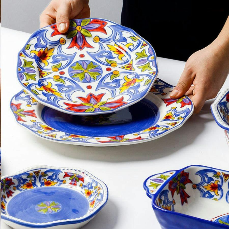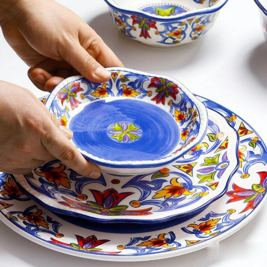 Nhà cửa & Đời sống > Bộ đồ bàn ăn > Dĩa || Bộ bát, đĩa, chén,dĩa gốm mỹ nghệ vẽ tay-Họa tiết hoa xanh - Chuyên xuất Châu ÂuCòn hàng