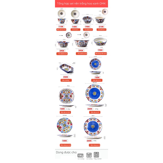 [Bộ bát đĩa, cốc, bình hoa gốm mỹ nghệ vẽ tay xuất Châu Âu họa tiết hoa xanh hàng cực phẩm của hãng OMK]Bộ sưu tập bát đĩa, bình hoa, cốc mùa hè với hoa văn vẽ tay nổi bật trên nền sứ, lớp men như tráng gương được đánh bóng kĩ càng, từng nét vẽ được chăm chút bởi những nghệ nhân lừng danh làng gốm, màu sắc rực rỡ, sống động và tinh tế khiến lòng người không khỏi đắm say ngay từ cái nhìn đầu tiên.