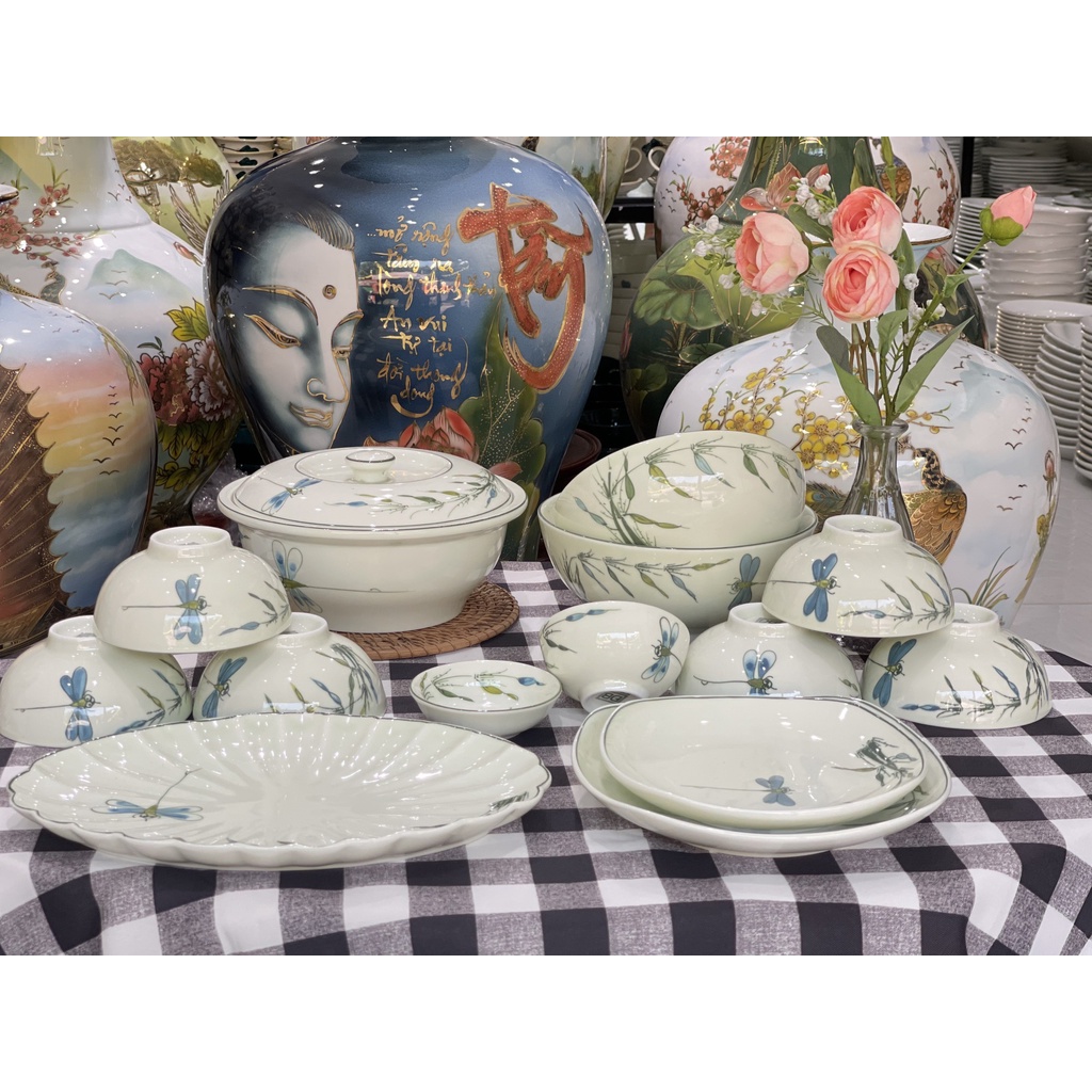 Bộ Bát Đĩa Chuồn Chuồn Vẽ tay, Bát ăn cơm - Gốm Sứ Bát Tràng < Có bán Lẻ - Nhiều mẫu mã >
