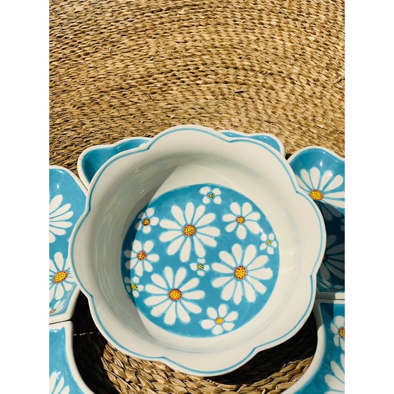 Bộ hoa mặt trời men kem dáng cánh tiên vẽ hoạ tiết hoa cỏ hiện đại, bát đĩa vẽ tay thủ công Bát Tràng 100%, sứ đanh đc nung nhiệt cao, an toàn tuyệt đối khi sử dụng, 1 bộ bao gồm có:1 bát tô cỡ lớn (đường kính 18cm)