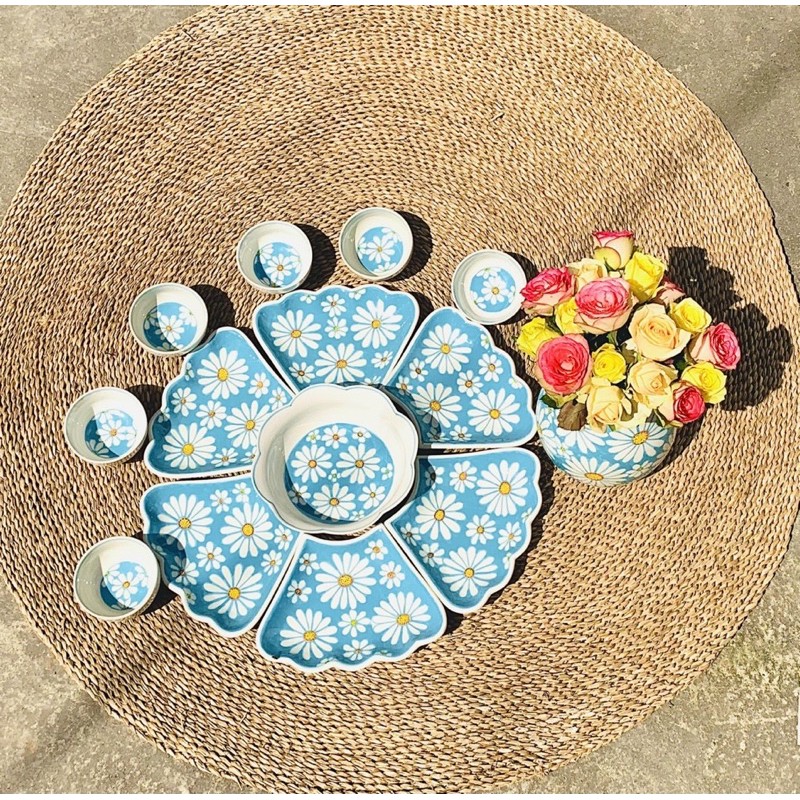 Bộ bát đĩa hoa mặt trời gốm Bát Tràng phù hợp làm cơm cúng gia tiên, các ngày lễ tết trong gia đình, ngày rằm, mồng một, ngày giỗ hoặc nhà có khách tới chung vui ✨