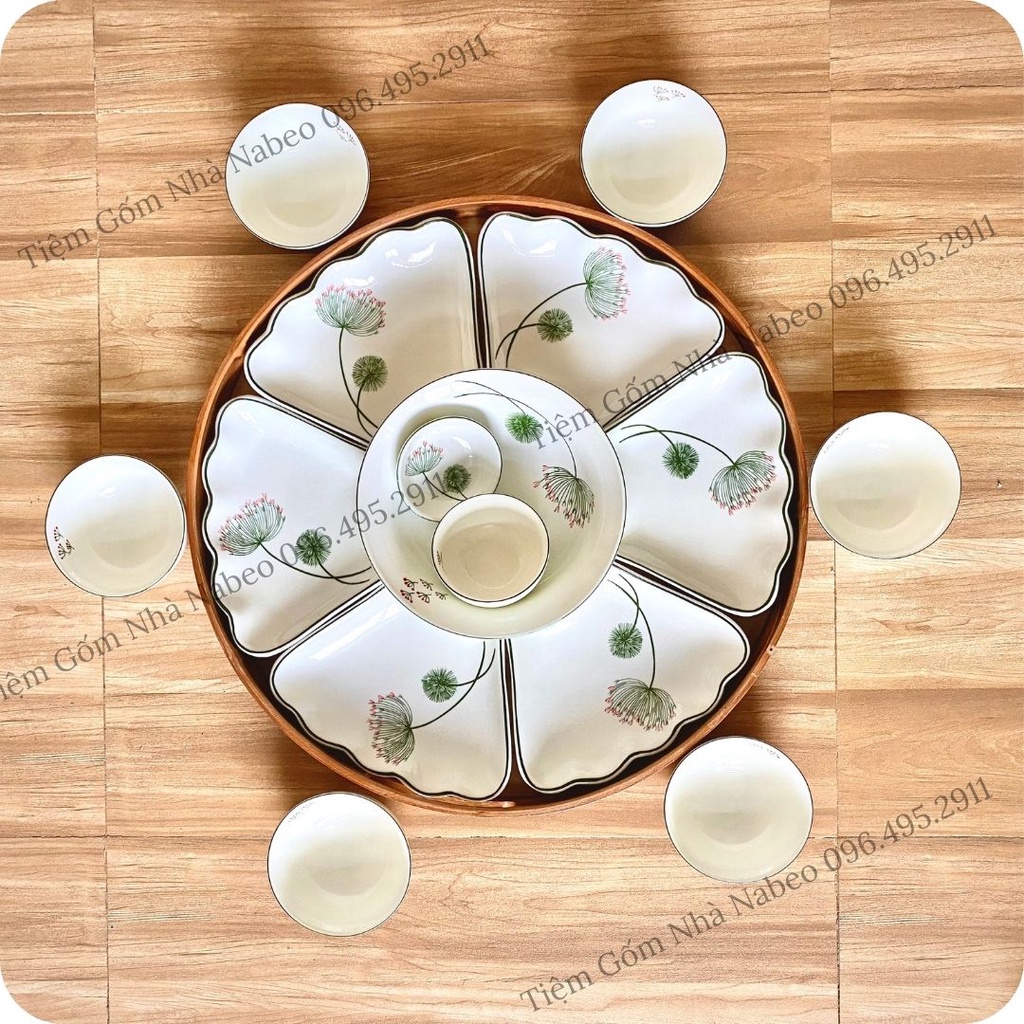 Giới thiệu Bộ Bát Đĩa Cúng Gia Tiên Bồ Công Anh, Bộ Hoa Mặt Trời Thắp Hương, 15 chi tiết ĐK 45cm - Gốm Sứ Bát Tràng