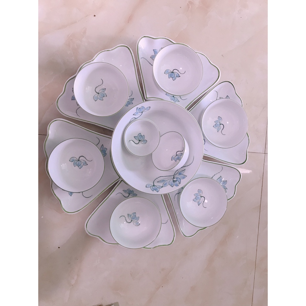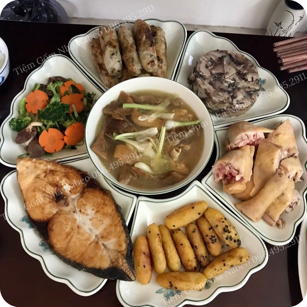 Bộ Đầy Đủ: 6 Đĩa cánh hoa + 1 Bát Tô + 6 Bát Cơm + 1 Bát Mắm + 1 Đĩa Muối