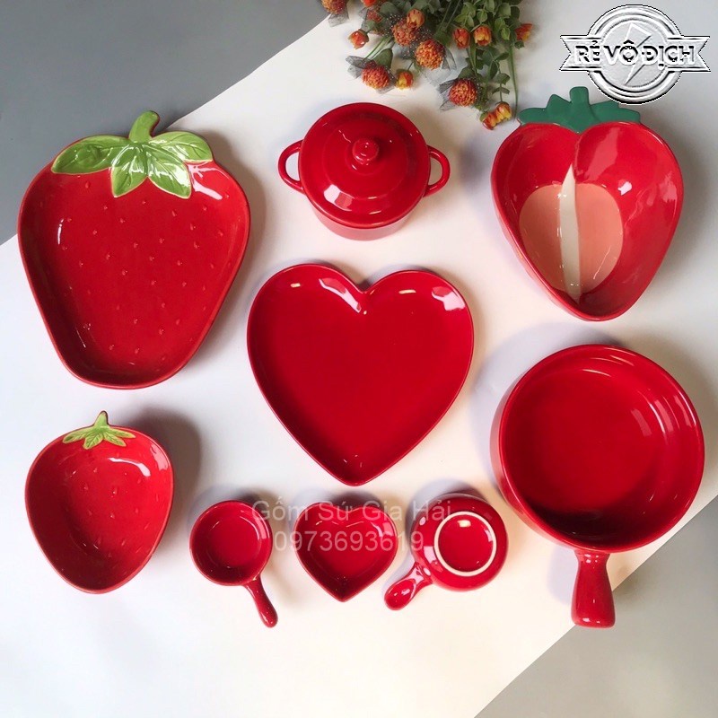 Nhà cửa & Đời sống > Bộ đồ bàn ăn > Tô || Bộ bát đĩa dâu tây đỏ cực sang chảnhCòn hàng