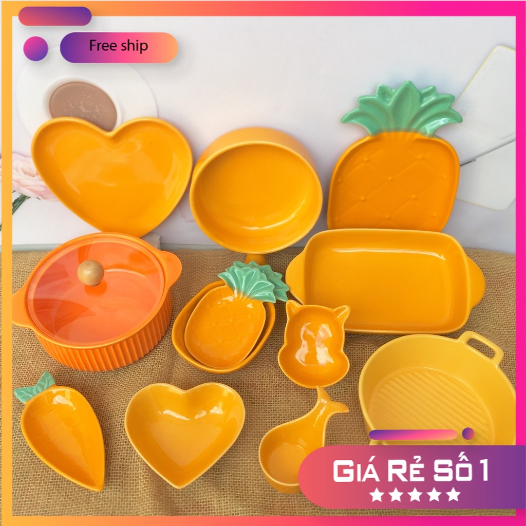 Bát Đĩa Decor Bát Ăn Cơm Bộ Chén Dĩa Sứ Màu Cam Dễ Thương Cute Cao Cấp🦀S129