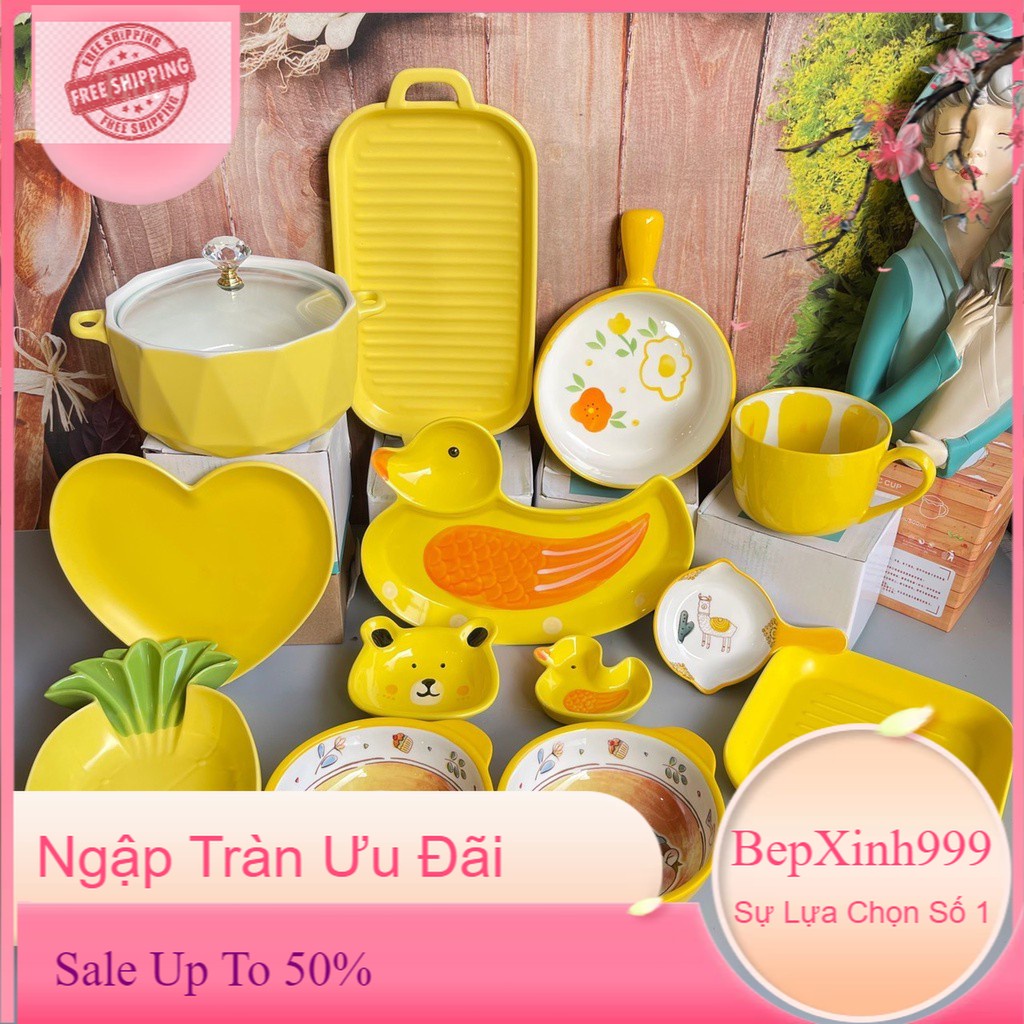 Bát Đĩa Decor🥣 Bát Ăn Cơm Bộ Màu Vàng Nhiệt Đới🥣 Chén Dĩa Sứ Dễ Thương Cute Cao Cấp B91