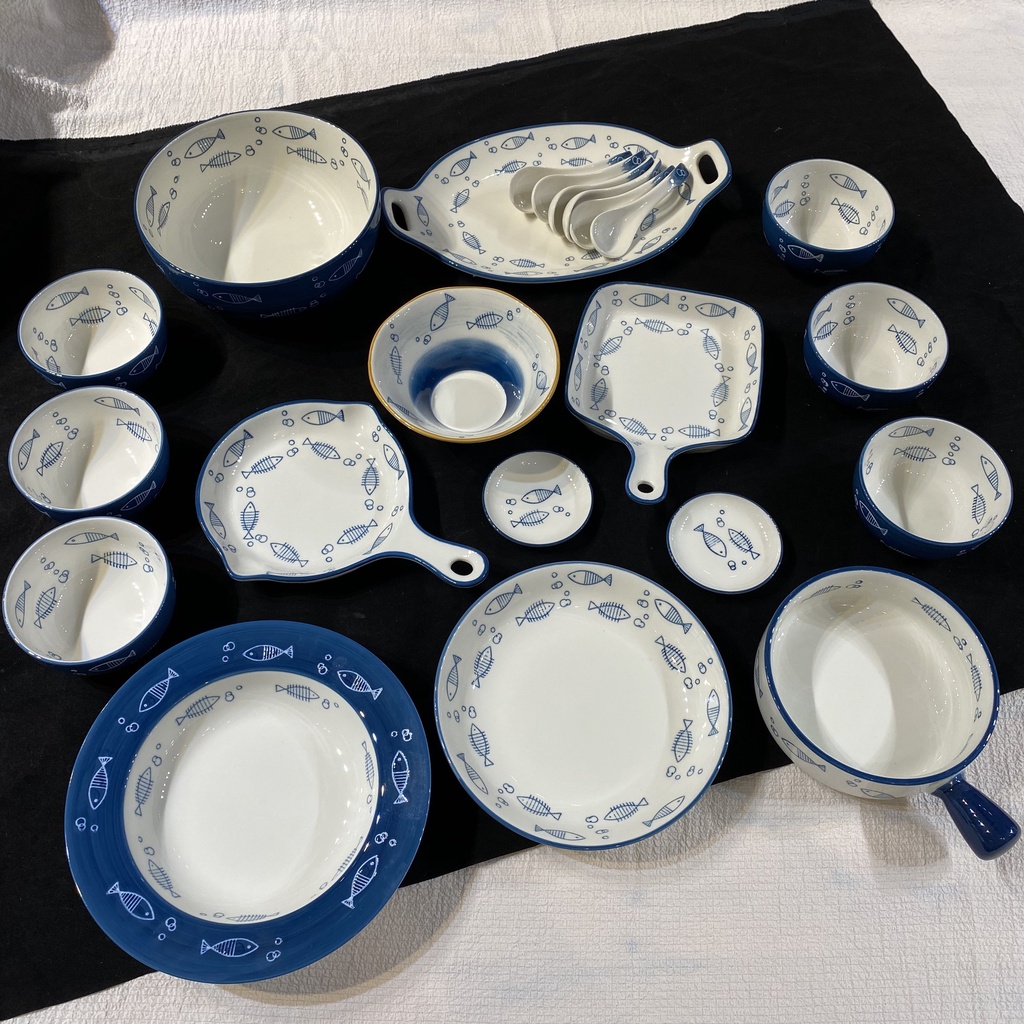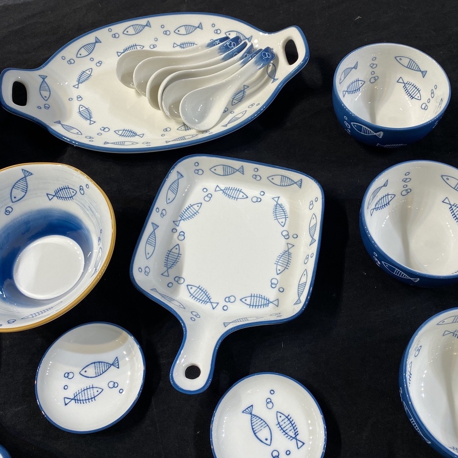 Giới thiệu Bộ Bát Đĩa Decor Cá Xanh - Trang Trí Họa Tiết Đẹp < có theo set và bán lẻ >