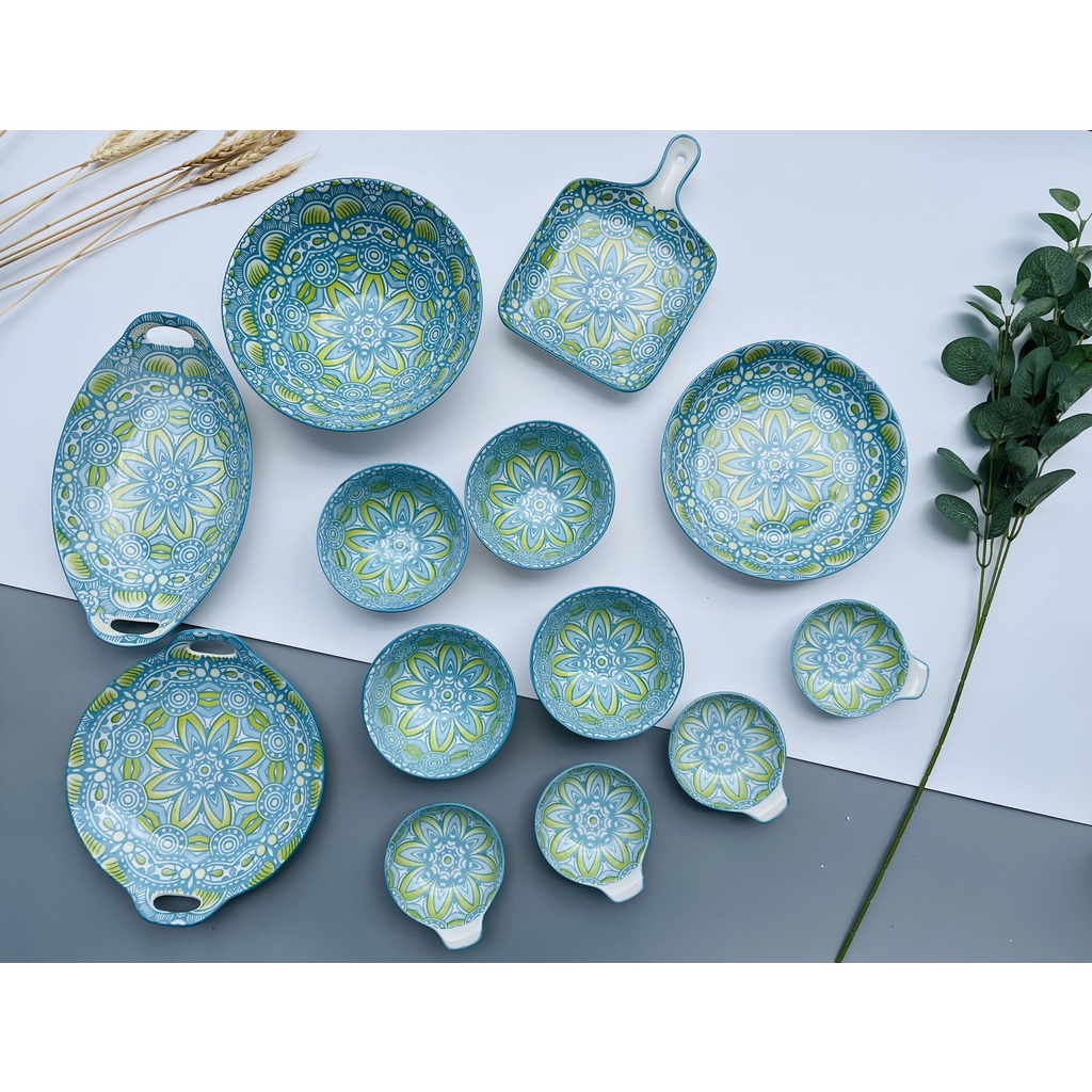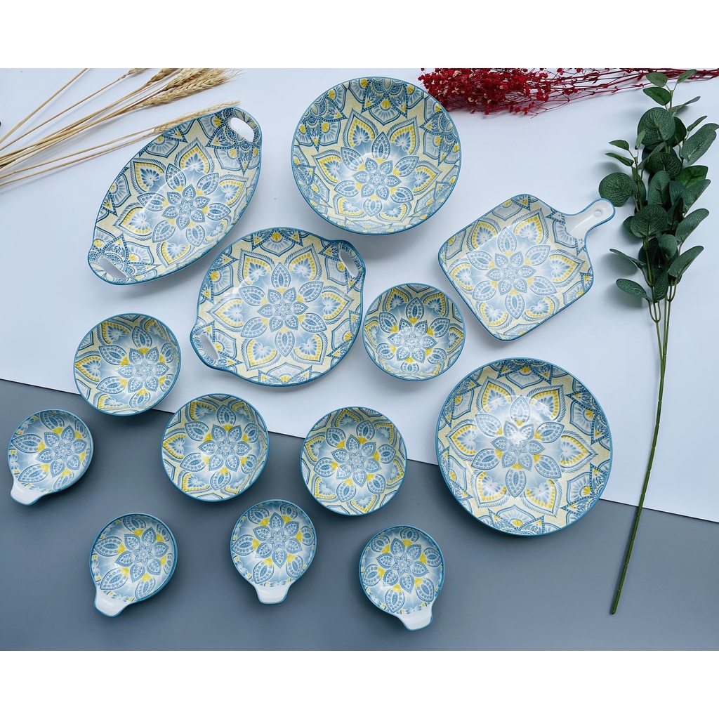 Nhà cửa & Đời sống > Bộ đồ bàn ăn > Dĩa || Bộ bát đĩa decor gồm 13 chi tiết chén đĩa sứ ăn cơm cao cấp Phương Đông, họa tiết thổ cẩm nổi bật và độc đáoCòn hàng