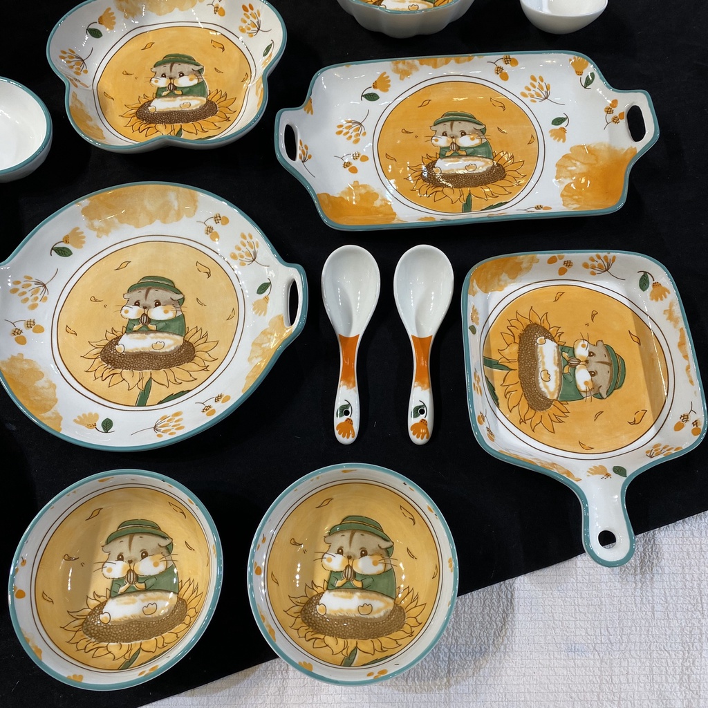 Giới thiệu Bộ Bát Đĩa Decor Hamster Hoa Hướng Dương - Trang Trí Họa Tiết Đẹp < có theo set và bán lẻ >