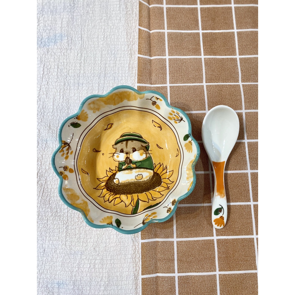 Bộ Bát Đĩa Decor Hamster Hoa Hướng Dương - Trang Trí Họa Tiết Đẹp < có theo set và bán lẻ >