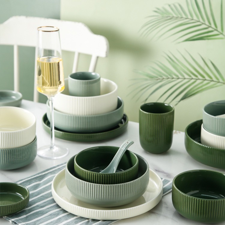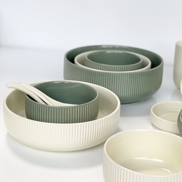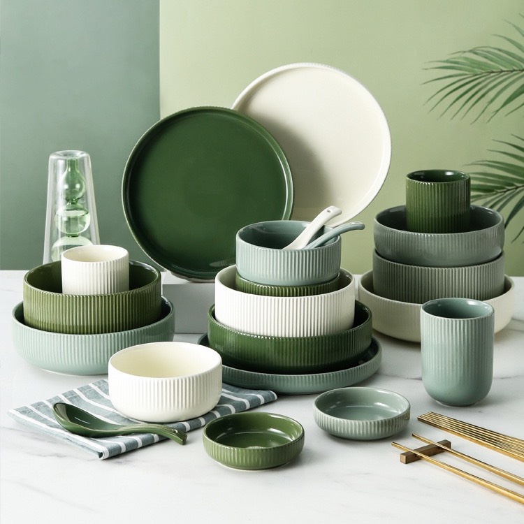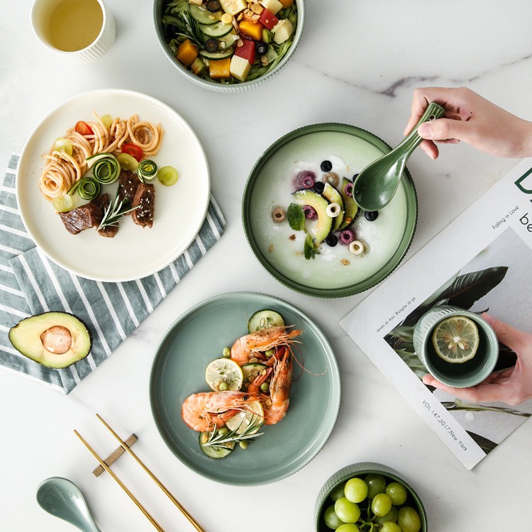 Nhà cửa & Đời sống > Bộ đồ bàn ăn > Tô || Bộ Bát Đĩa Decor Hoạ Tiết Tối Giản Xanh - Trắng, Trang Trí Bàn Ăn Họa Tiết Đẹp < Có bán lẻ >Còn hàng