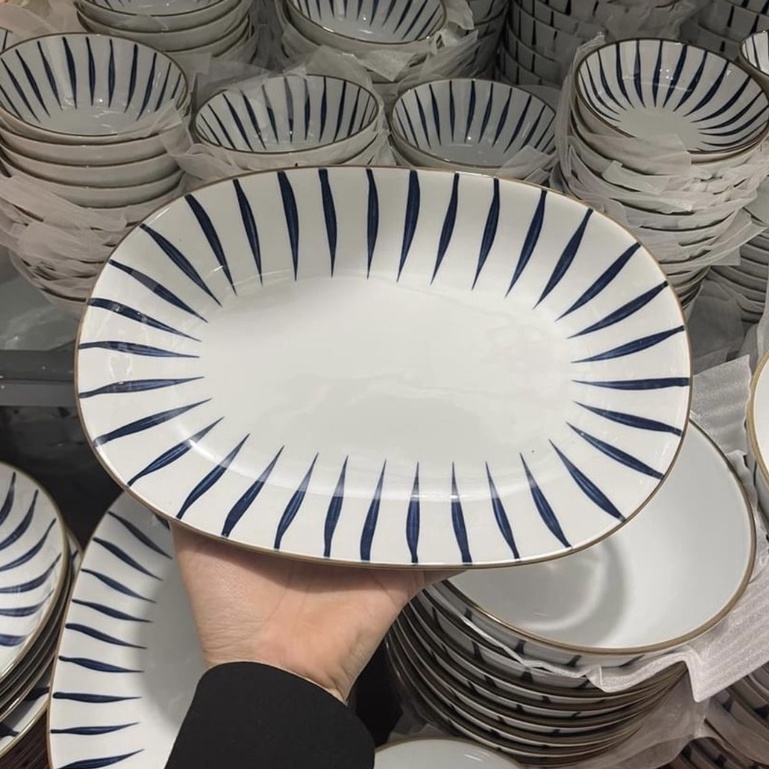 Nhà cửa & Đời sống > Bộ đồ bàn ăn > Tô || Bộ Bát Đĩa Decor Kẻ Sọc - Bộ Hạ Cúc - 18 món - Trang Trí Họa Tiết Đẹp < Bán theo set >Còn hàng