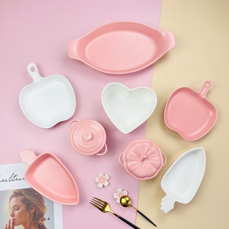 Nhà cửa & Đời sống > Bộ đồ bàn ăn > Dĩa || Bộ Bát Đĩa Decor MÀU HỒNG TRẮNG SALE SỐC Set bát ăn cơm- Decor bàn ănCòn hàng
