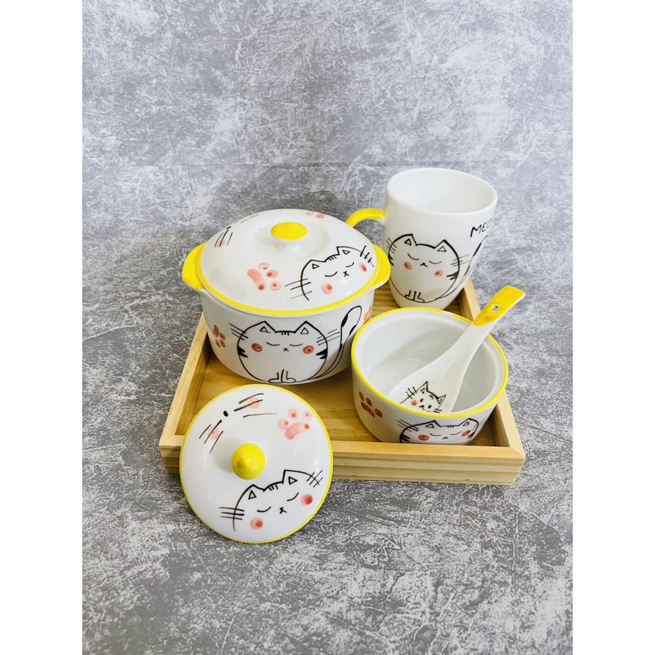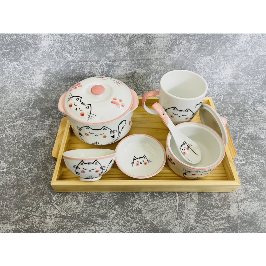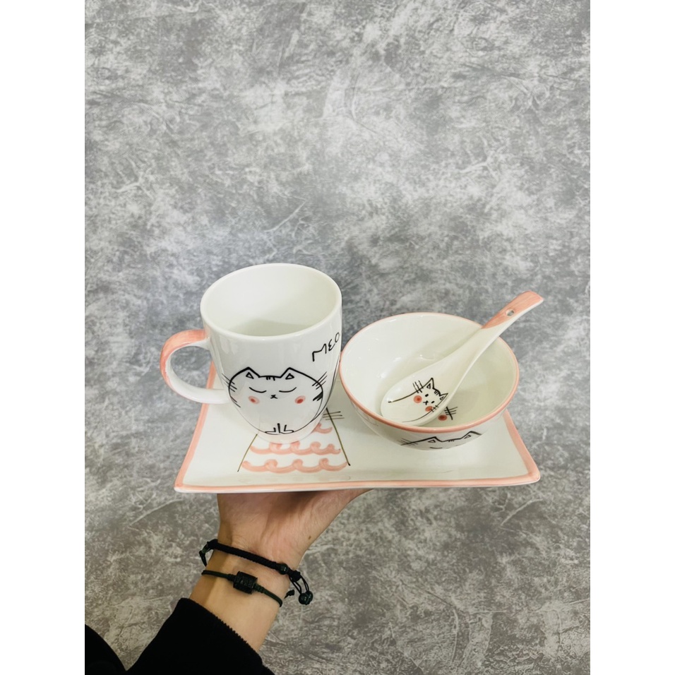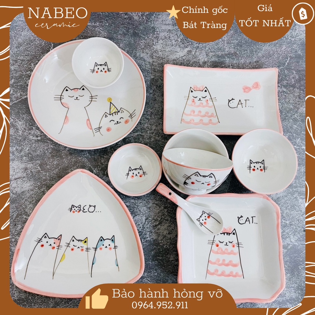 Nhà cửa & Đời sống > Bộ đồ bàn ăn > Tô || Bộ Bát Đĩa Decor Mèo Hồng, Bộ Đồ Ăn cho bé ăn dặm cho bé gái, họa tiết vẽ tay dễ thương - Gốm Sứ Bát TràngCòn hàng