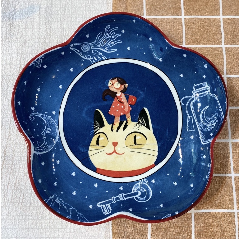 Bộ Bát Đĩa Decor Mèo Xanh - Trang Trí Họa Tiết Đẹp < có theo set và bán lẻ >