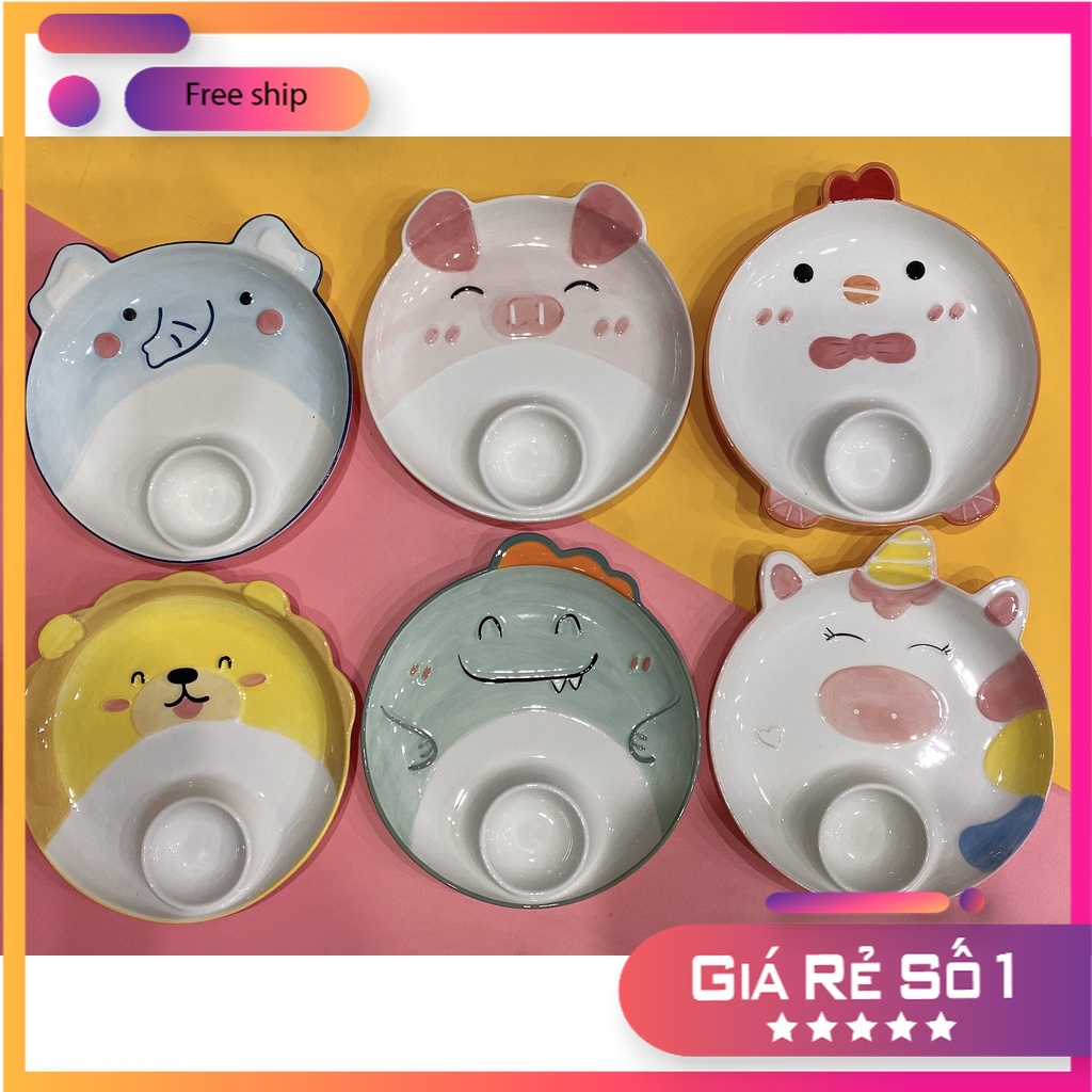 Bộ Bát Đĩa Decor Set Chén Dĩa Sứ Hoạt Hình Động Vật Dễ Thương Cute Cao Cấp S124