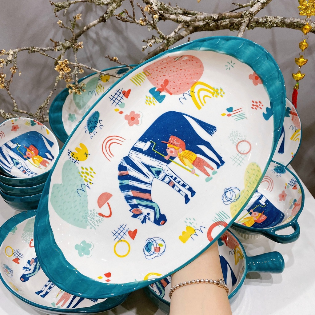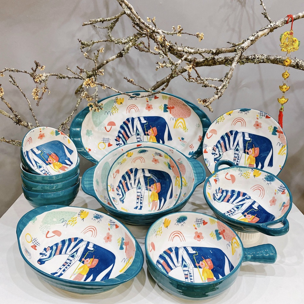 Chất liệu: GỐM SỨ cao cấp cam kết an toàn 100%Sét bát đĩa decor ngựa vằn 11 món xinh yêu