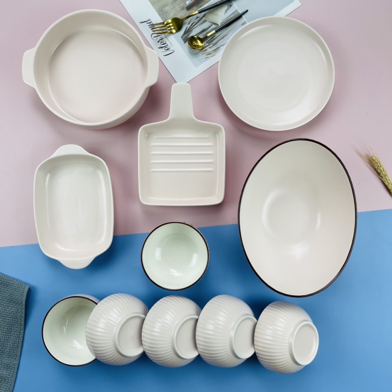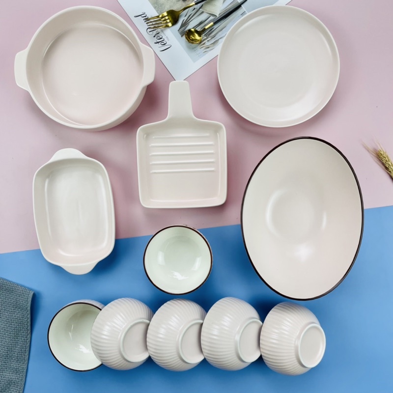 Nhà cửa & Đời sống > Bộ đồ bàn ăn > Tô || Bát Đĩa DecorTẶNG GÁC ĐŨABát Ăn Cơm Bộ Chén Dĩa Sứ Hồng pastel Dễ Thương Cute Decor Cao CấpCòn hàng