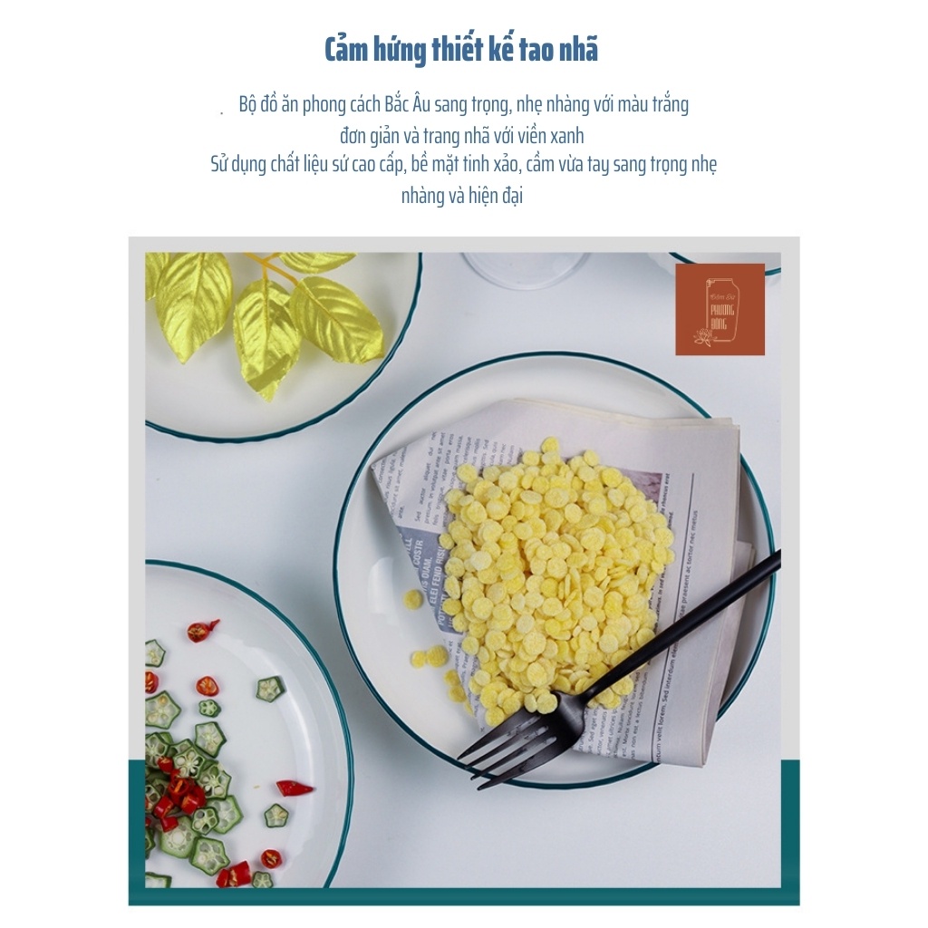 🌿BỘ SẢN PHẨM BÁT ĐĨA mang phong cách Bắc Âu sang trọng nhẹ nhàng với màu trắng đơn giản, trang nhã kết hợp viền xanh bao quanh rất tinh tế.