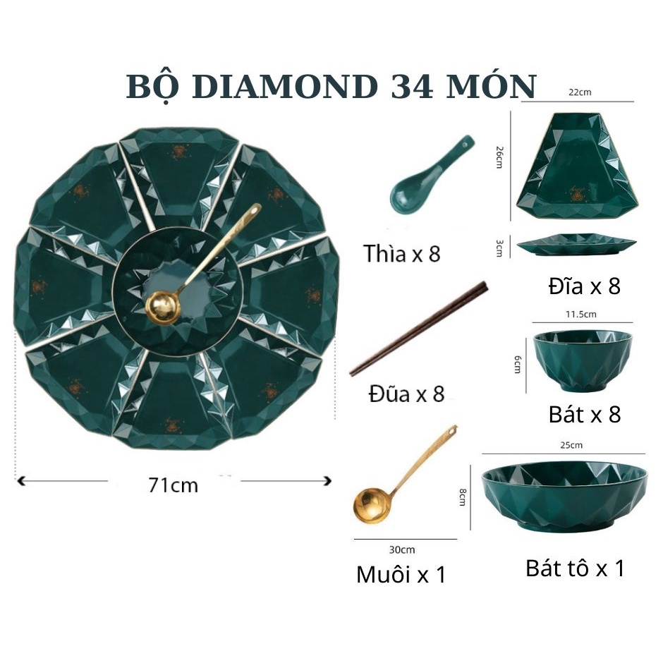 ♥️♥️♥️BỘ BÁT SỨ KIM CƯƠNG 34 MÓN ♥️♥️♥️🍀 THÔNG TIN SẢN PHẨM