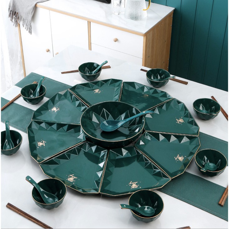 Giới thiệu Bộ bát đĩa diamond 8 ☘𝘾𝘼𝙊 𝘾𝘼̂́𝙋☘ Bộ bát đĩa sứ kim cương 34 món xanh cổ vịt phong cách Bắc Âu