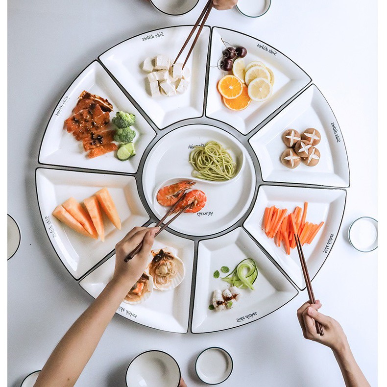 Nhà cửa & Đời sống > Nội thất > Bàn || Bát đĩa ghép xếp hình tròn bày bàn ăn món cỗ bàn tiệc (2 mẫu)Còn hàng