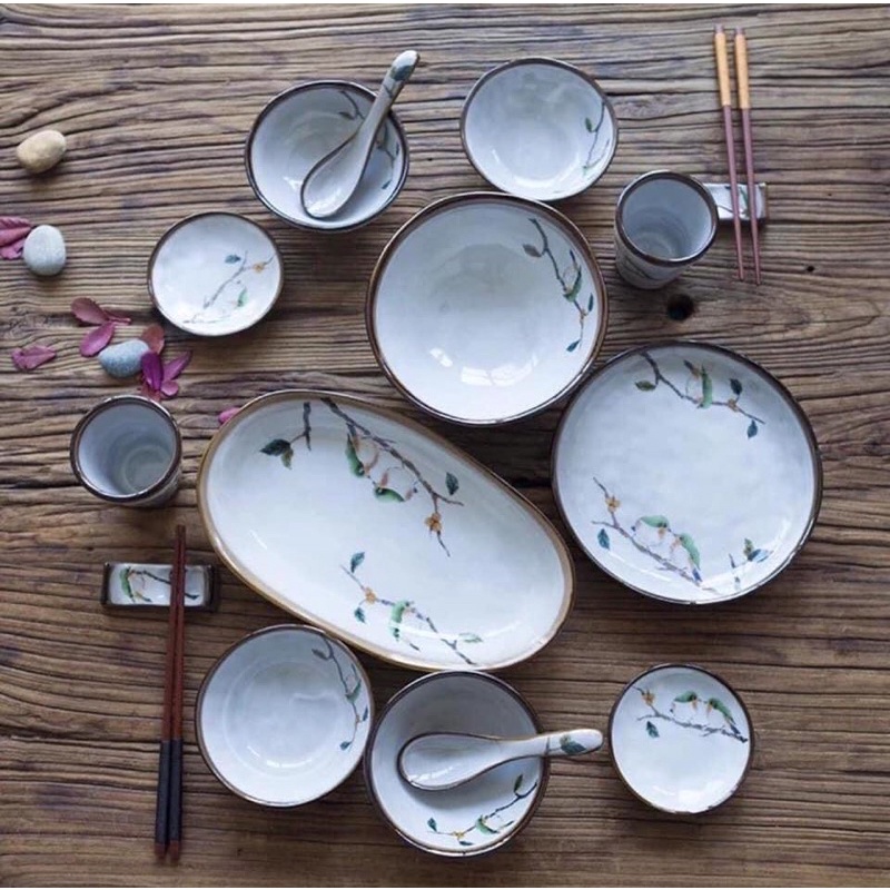 Nhà cửa & Đời sống > Bộ đồ bàn ăn > Tô || Bộ bát đĩa gia đình Nhật họa tiết thiên nhiên mùa xuấn , chất liệu sứ xương an toàn cho sức khỏeCòn hàng