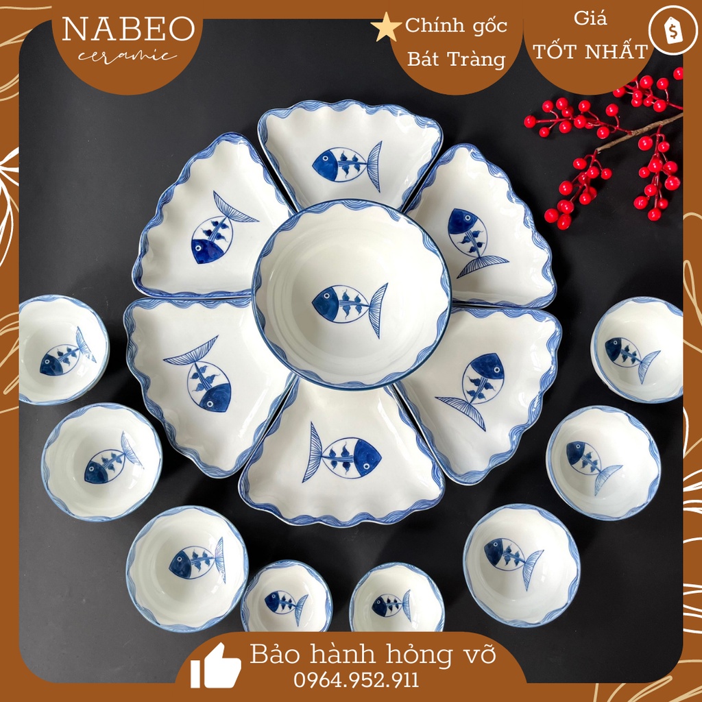 Nhà cửa & Đời sống > Bộ đồ bàn ăn > Tô || Bộ Bát Đĩa Gia Tiên Cá Viền, Bộ Mặt Trời Thắp Hương, 15 chi tiết Đk 45 cm - Gốm Sứ Bát TràngCòn hàng