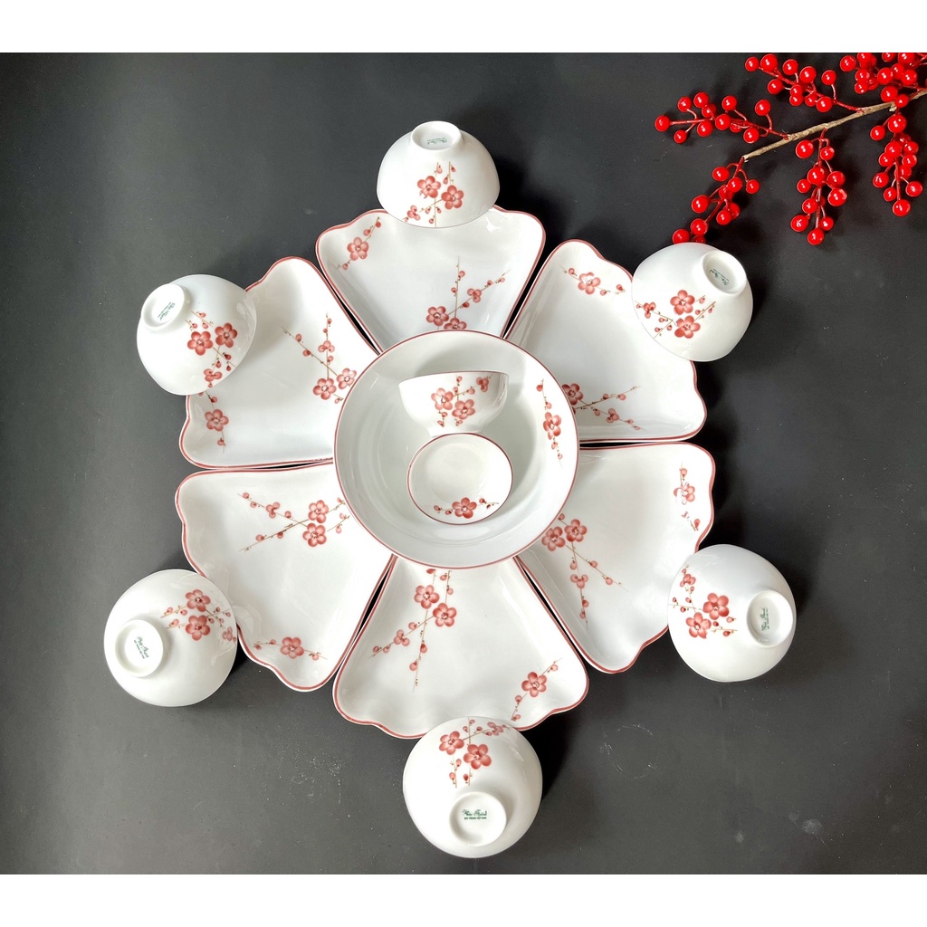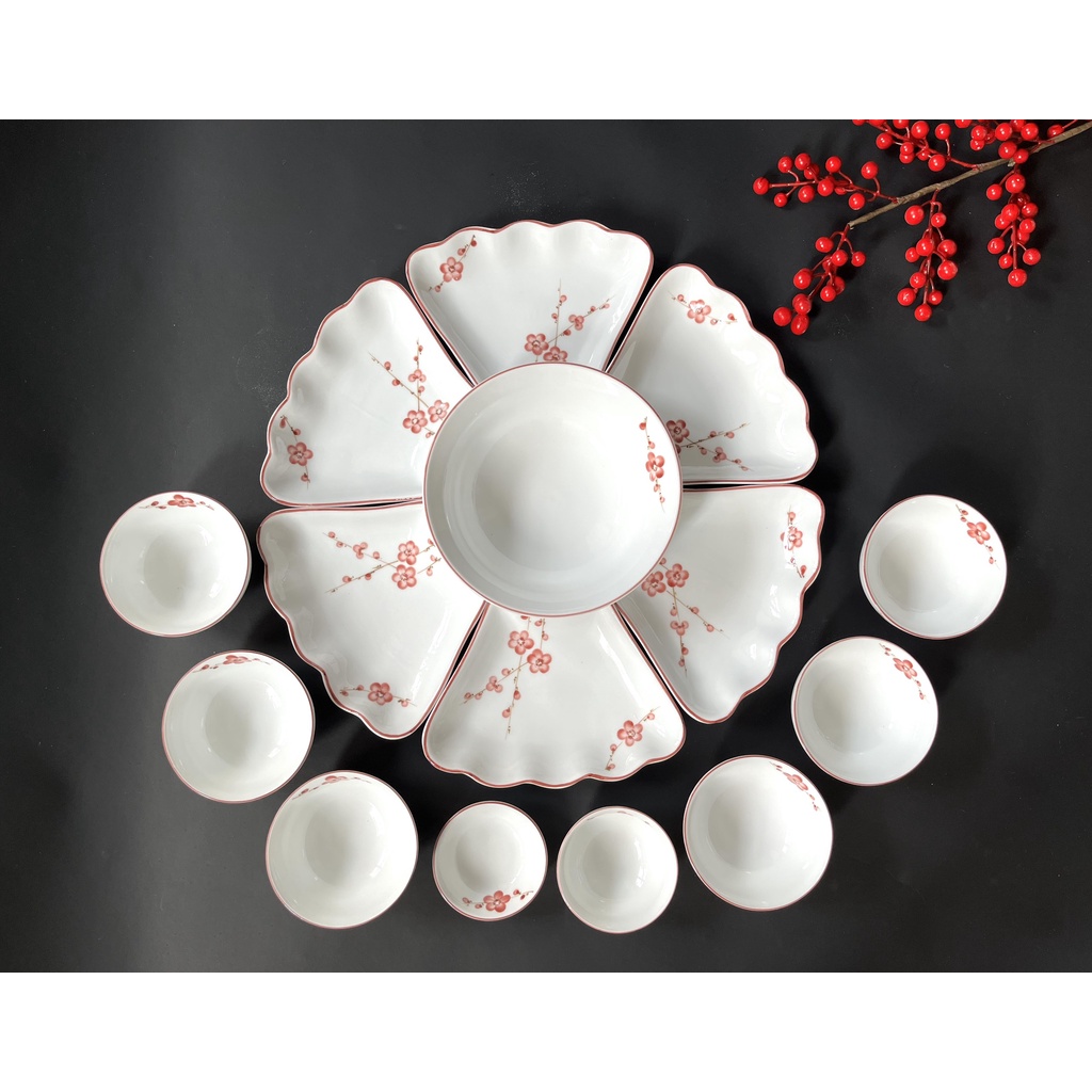 Bộ Đầy Đủ: 6 Đĩa cánh hoa + 1 Bát Tô + 6 Bát Cơm + 1 Bát Mắm + 1 Đĩa Muối
