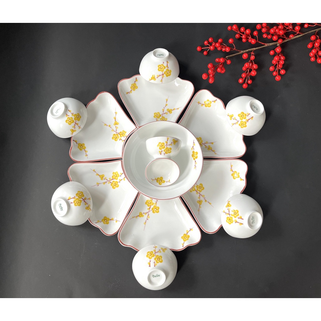 Bộ Đầy Đủ: 6 Đĩa cánh hoa + 1 Bát Tô + 6 Bát Cơm + 1 Bát Mắm + 1 Đĩa Muối