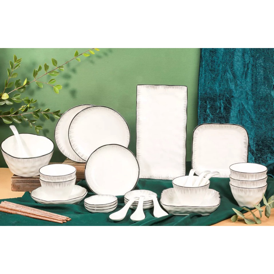 Nhà cửa & Đời sống > Bộ đồ bàn ăn > Tô || Bát Đĩa Gốm Sứ Cao Cấp Bộ Đồ Ăn Màu Trắng Men Gấm Phong Cách Châu Âu 33 Món 6 Người ĂnCòn hàng