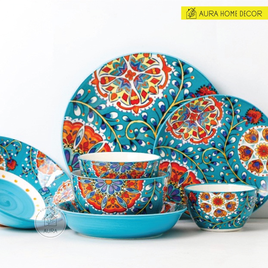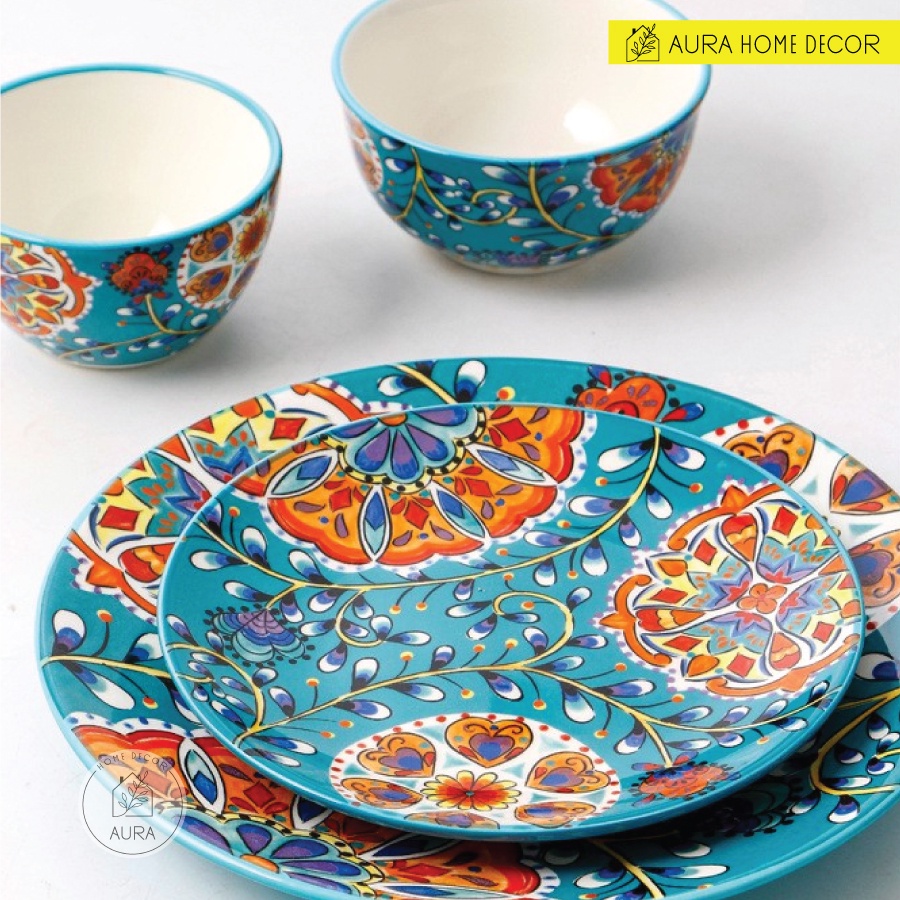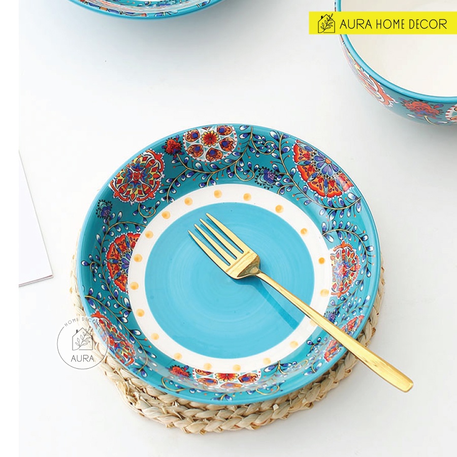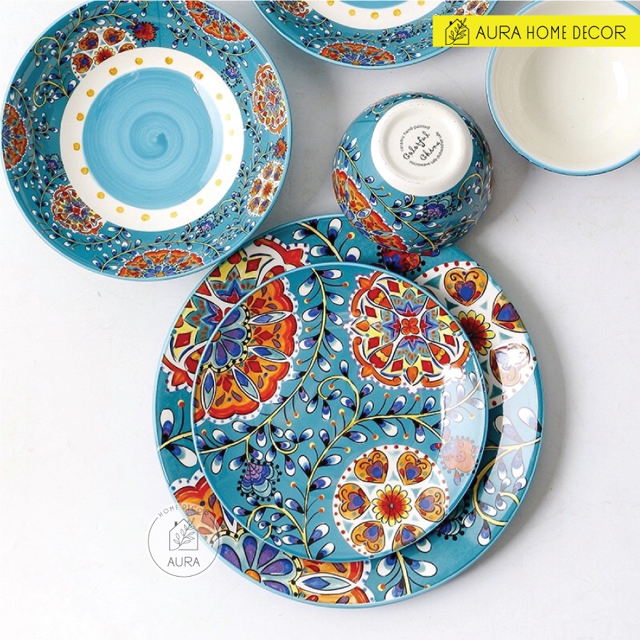 Nhà cửa & Đời sống > Bộ đồ bàn ăn > Dĩa || Bộ bát đĩa gốm sứ cao cấp họa tiết hoa lá rực rỡ nên xanh ngọc cực đẹp - An toàn sức khỏeCòn hàng